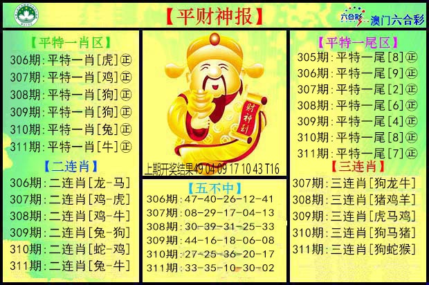| 309期必中二肖:狗虎 | 309期必中③码:32.44.16 |