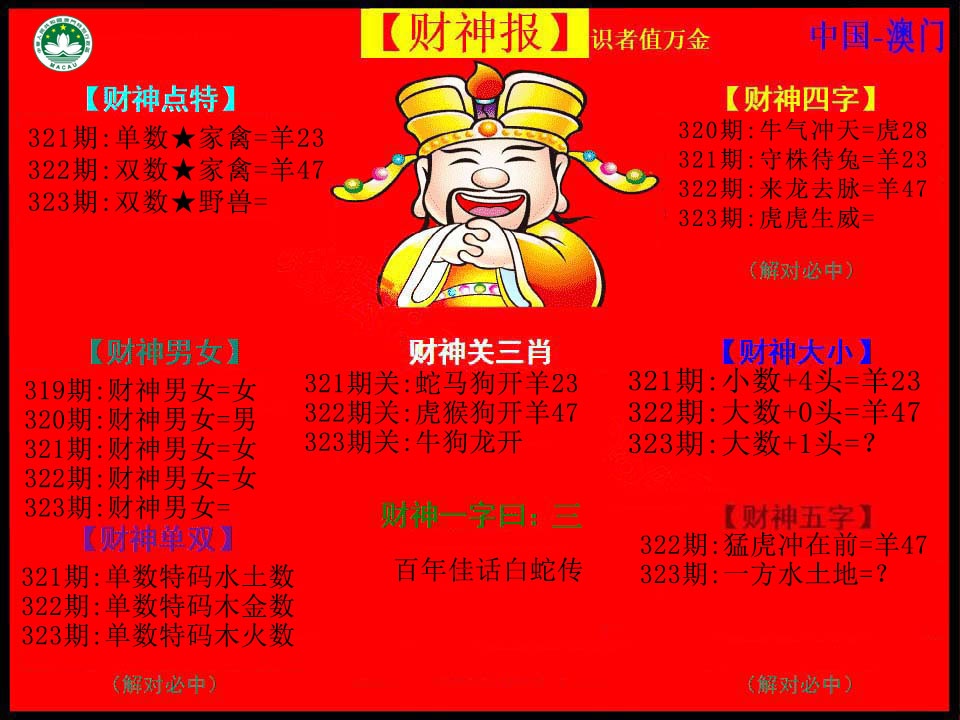 | 323-325期 | 一肖〖虎虎虎〗 | 323期下注五千中 | 开:鸡09准 |