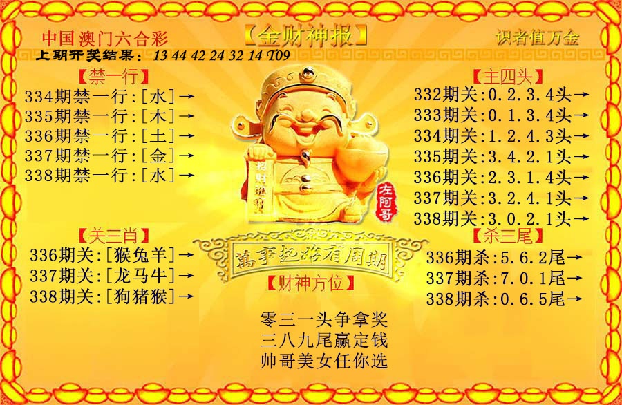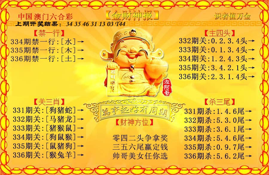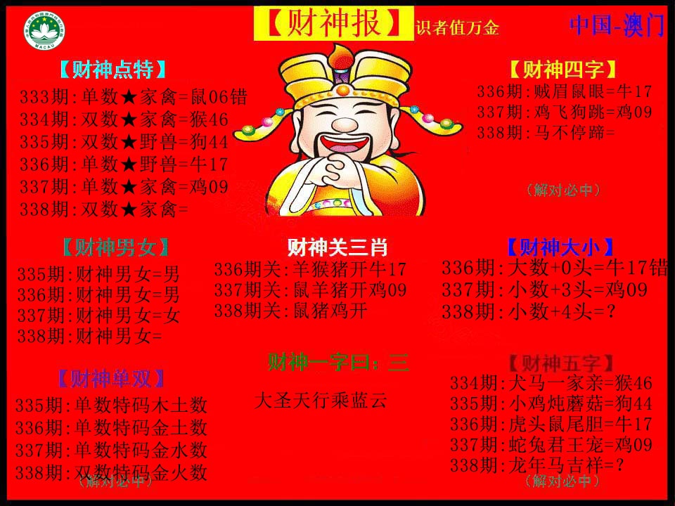 | 334期: 买啥都中 【野兽野兽野兽】开:猴46准 |