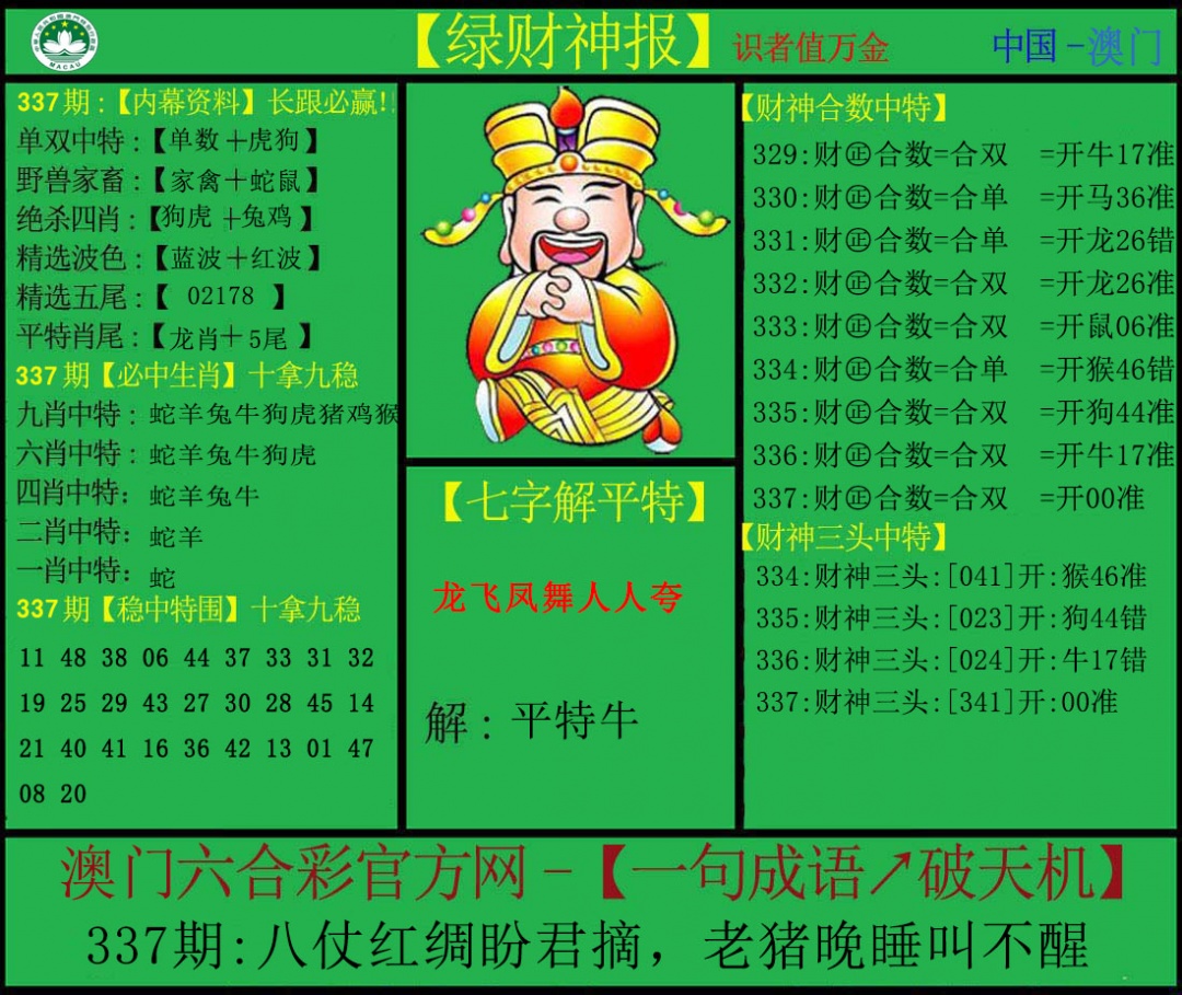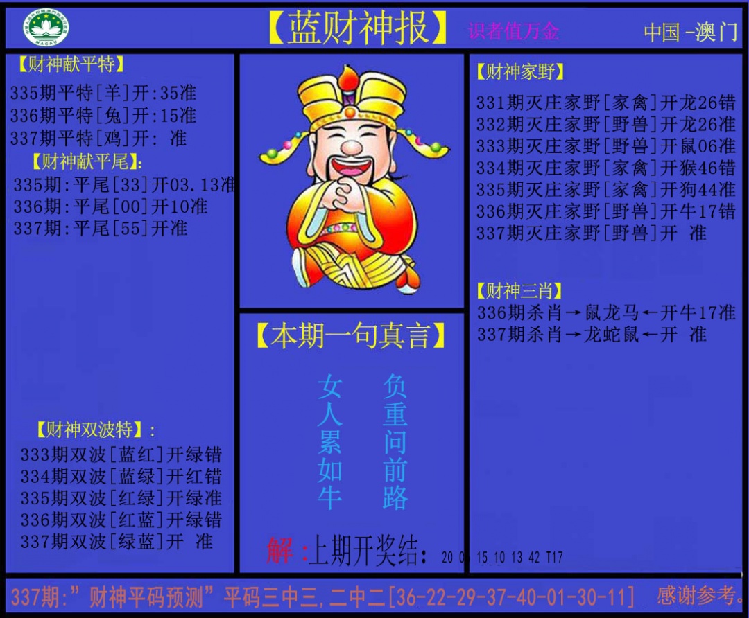| 337期: 买啥都中 【地肖地肖地肖】开:?00准 |