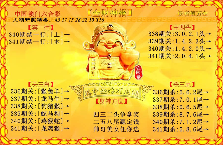 | 340期必中二肖:猴虎 | 340期必中③码:22.46.16 |