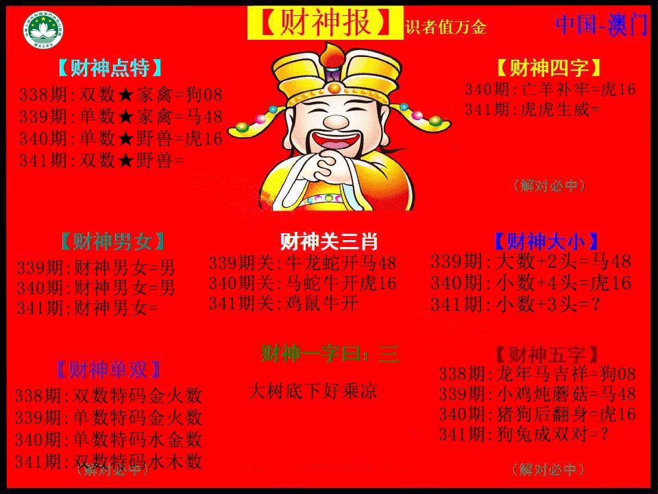 | 341期:②肖②码【免费取料(永不收费) 】开:?00准 |